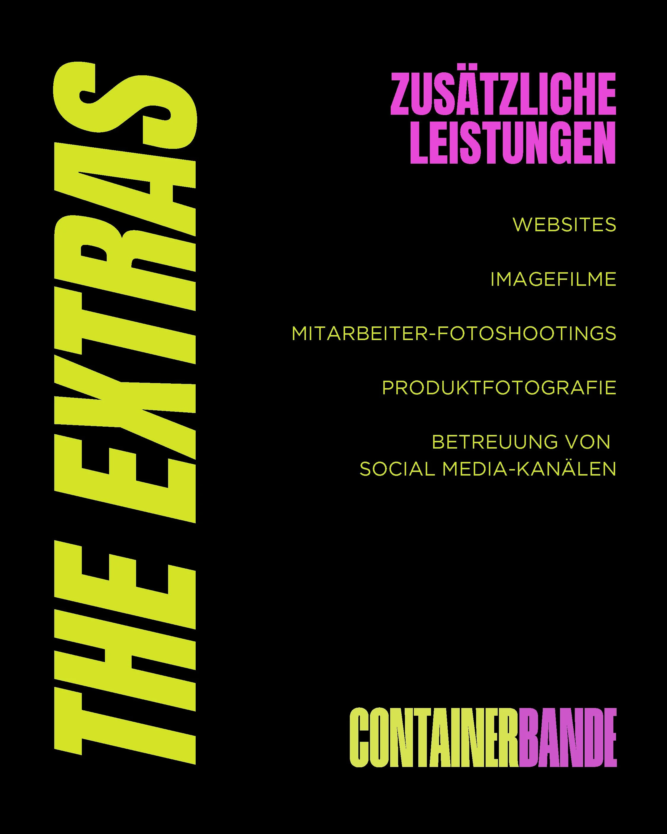 WIR SIND EIN KOLLEKTIV KREATIVER KÖPFE – VON FOTOGRAF:INNEN ÜBER DESIGNER:INNEN BIS HIN ZU PROJEKTMANAGER:INNEN UND VIDEOGRAF:INNEN. JEDE:R BRINGT EINE BESONDERE STÄRKE MIT, UND GEMEINSAM SCHAFFEN WIR RAUM FÜR IDEEN, DIE BEGEISTERN.